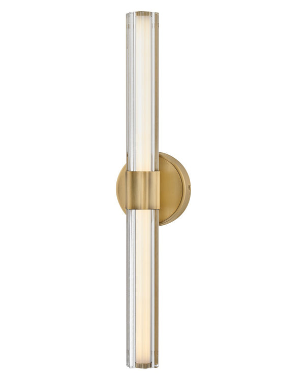 Georgette's sophisticated silhouette is enhanced by clear fluted crystal, creating a stunning fixture with bold symmetry and captivating details. A chic central cuff and back plate provide balance and contrast that effortlessly complements any space with a Black Oxide or Lacquered Brass finish.