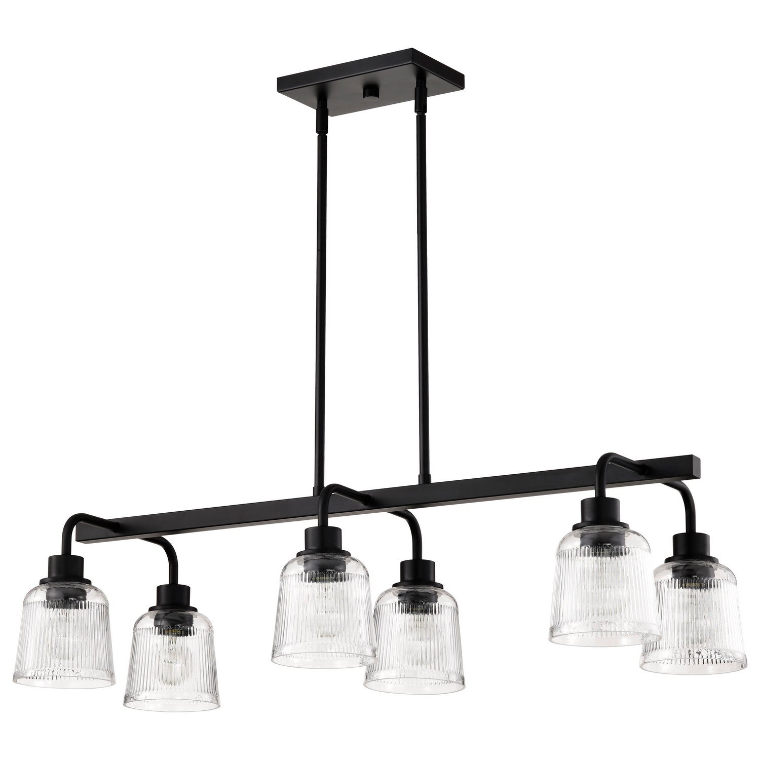 Rustic charm meets contemporary style in the Grayson Collection, designed to bring industrial farmhouse elegance to today's interiors. Ideal for creating inviting spaces with character, the clean lines and textured details capture the essence of enduring design. With its bold matte black finish and clear ribbed glass, this collection delivers a perfect blend of warmth and modern sophistication. Whether in a cozy kitchen or a chic living area, Grayson offers that perfect touch of Industrial Farmhouse for modern living.