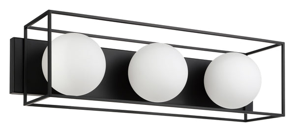 3 LT Bath/Vanity Light w/ Matte Black Finish & White Sphere Glass Shades