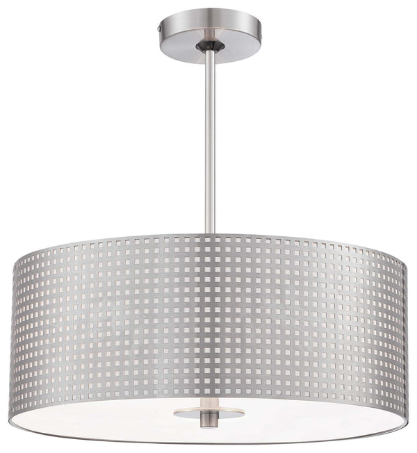 3 Light Pendant with Brushed Nickel Finish and Perforated Steel Shade Etched Glass Diffuser