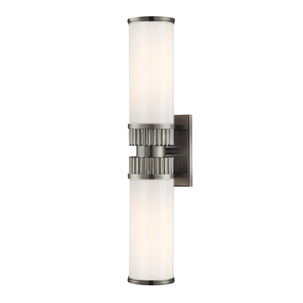 Harper`s expanse of opal glass appears all the more smooth in contrast to its textured base. The deeply cast texture of Harper`s inspired metalwork adds a memorable detail to the handsome wall sconce.