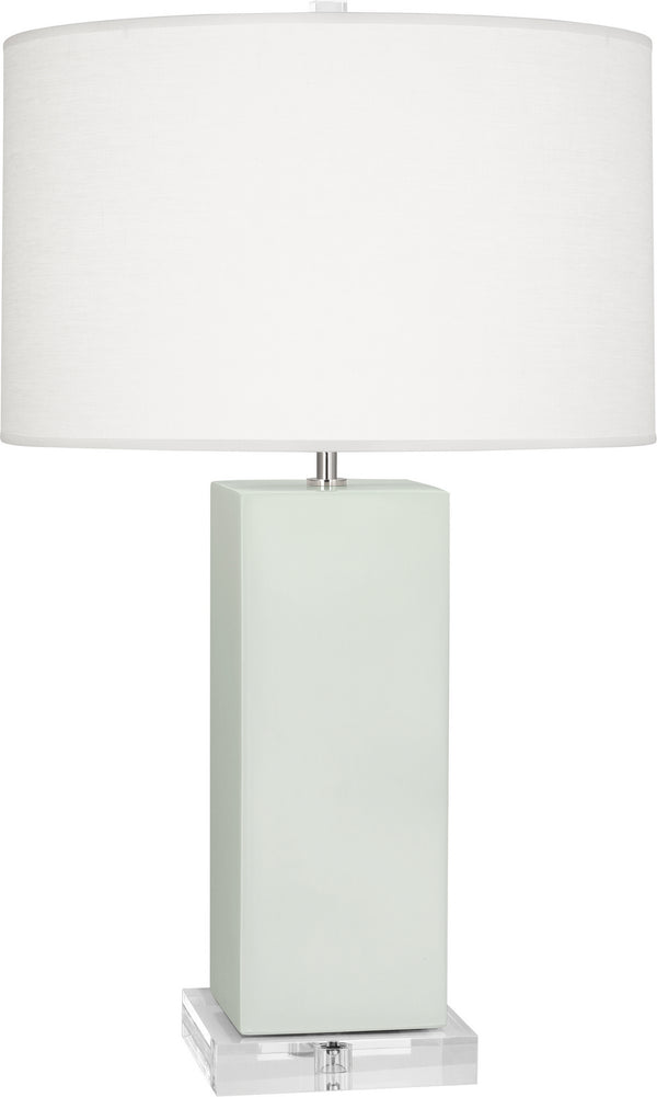 A simple design and clear acrylic base make Harvey versatile and all about the color it brings to a space. A textured oyster linen shade diffuses the light beautifully for warm and inviting illumination. - Baby Blue Glazed Ceramic Harvey Table Lamp With Oyster Linen Shade