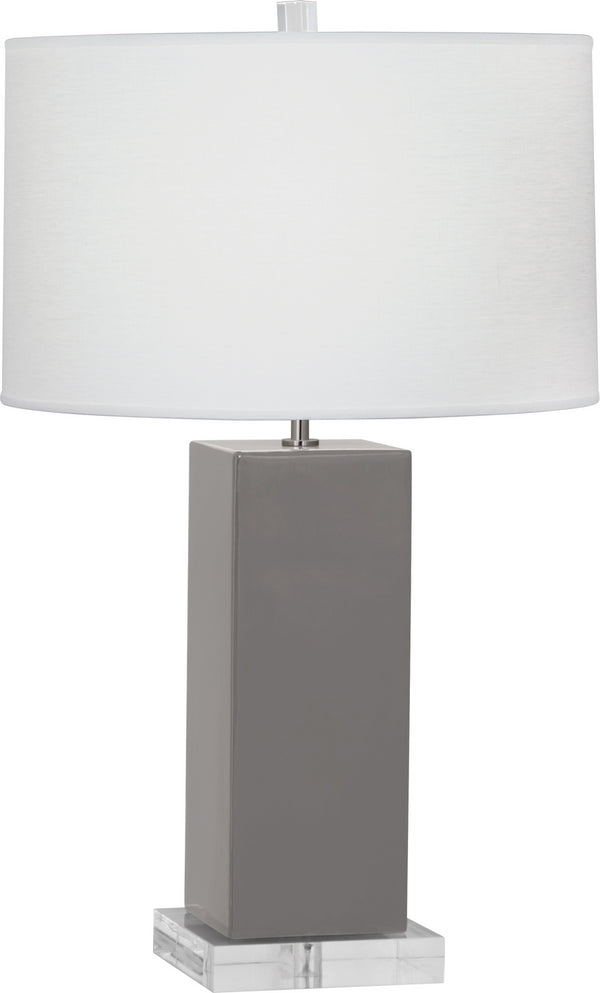 A simple design and clear acrylic base make Harvey versatile and all about the color it brings to a space. A textured oyster linen shade diffuses the light beautifully for warm and inviting illumination. - Baby Blue Glazed Ceramic Harvey Table Lamp With Oyster Linen Shade