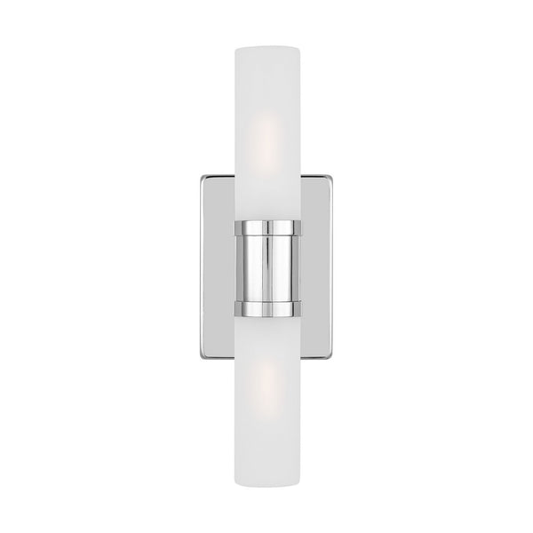 Sleek and modern, this 2-Light bath series pairs a square backplate with tubular etched white opal glass shade. The Keaton two light vanity fixture in Chrome provides abundant light for your bath vanity, while adding a layer of today's style to your interior design.