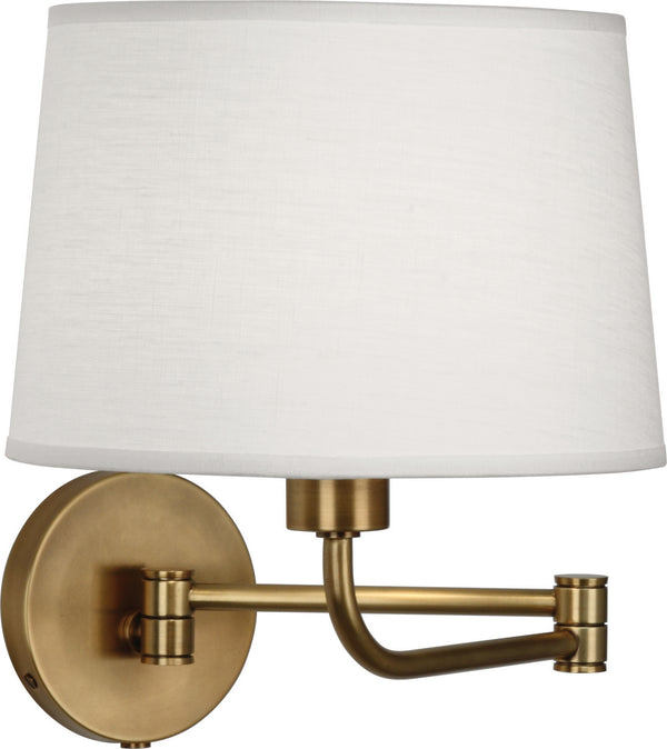 Koleman is a versatile collection featuring an adjustable swing arm and brightness control. This collection is perfect for contemporary or transitional spaces. - Aged Brass Koleman Wall Swinger With Oyster Linen Shade