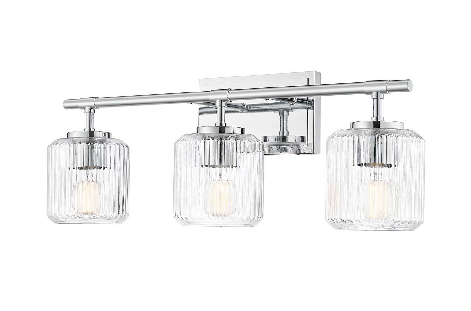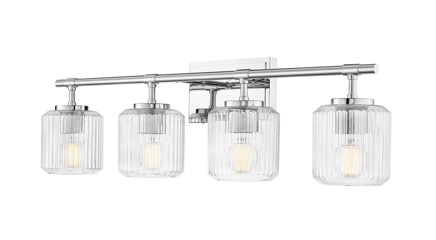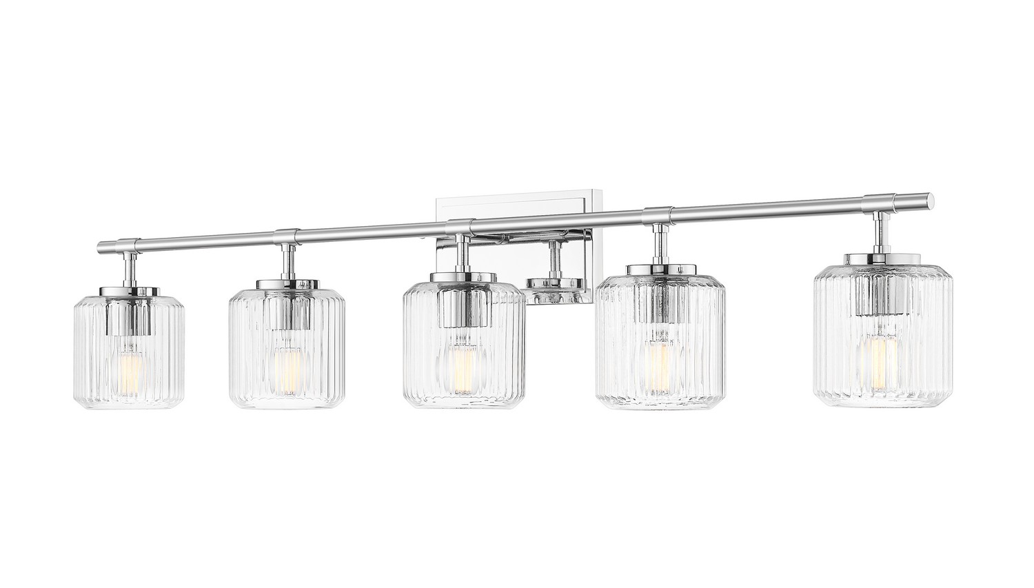 Chrome with Clear Ribbed Glass and Clear Textured Shade Chrome with Clear Ribbed Glass and Clear Textured Shade