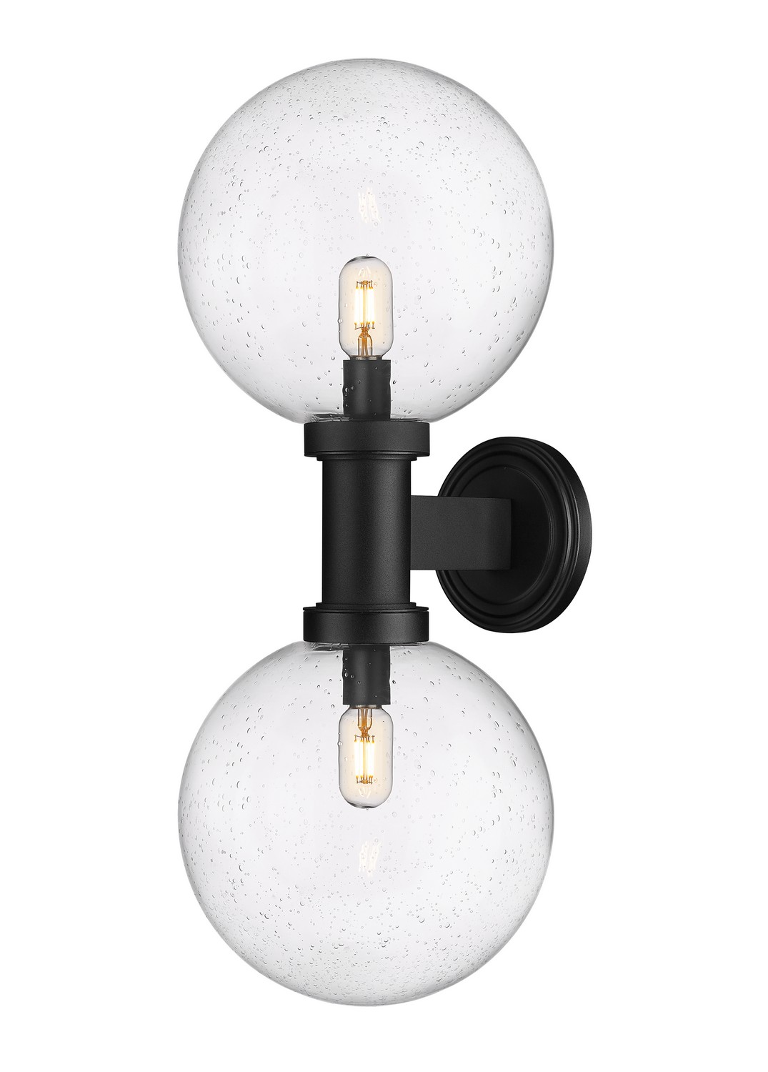 A delightful dose of Mid-Century Modern whimsy turns exterior spaces into showcase settings when this outdoor fixture takes its place. From the Laurent collection comes a two-light outdoor wall sconce offering a retro-influenced motif and a dose of Art Deco attitude. Opal white glass globe shades position on either side of a black finish aluminum frame, providing eye-catching palette contrast and a charming way to illuminate a patio, porch, or deck area.