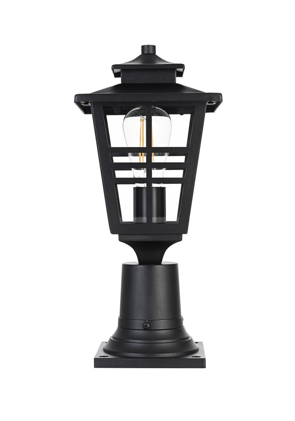 Add a welcoming glow to your outdoor spaces with this timeless lantern-style post light. Inspired by traditional craftsman designs, this light features a durable iron frame paired with clear glass panels to provide excellent illumination. The matte black finish complements any exterior decor, adding a stylish yet functional touch to your entryway, patio, or garage. The grid detailing on the clear glass panels enhances the overall aesthetic while delivering a bright and comforting glow. Built to withstand outdoor elements, this light is both practical and visually appealing, perfect for illuminating your home's exterior with style and efficiency.