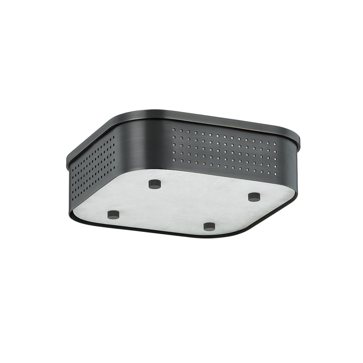 Bringing two striking materials together, Madison Square features a thick panel of alabaster recessed into a sleek metal shade. Perforations in the shade add a graphic edge to this flush mount while facilitating side illumination. When the LED is illuminated, the milky alabaster comes alive with a warm, welcoming glow. Choose between two distinctive finish options: Aged Brass for a timeless elegance or Distressed Bronze for a more industrial feel. Due to the one-of-a-kind nature of the medium, exact colors and patterns may vary slightly from the image shown.