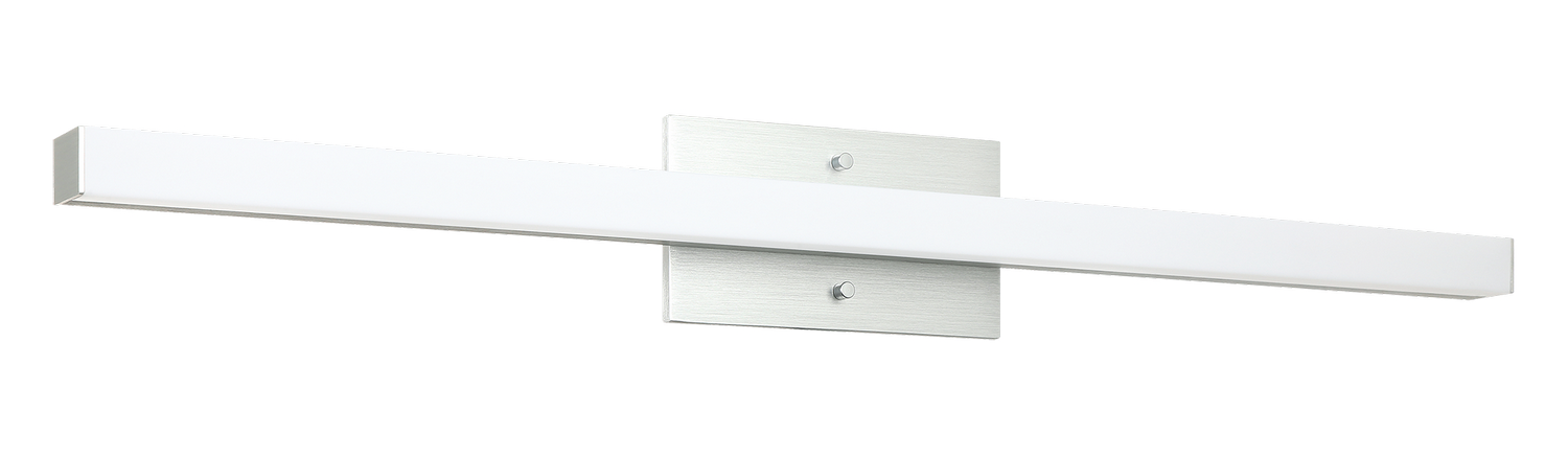 The simplicity of the sleek rectangular LED sconces with metal canopy and white acrylic lens in any modern space. Available in 2 sizes and 2 finishes - Aluminum & Matte Black.