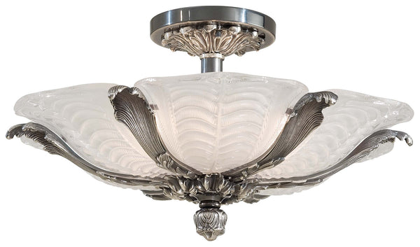 6 Light Solid Cast Brass Semi Flush in Platinum Finish with White Murano Glass. Handcrafted in Spain