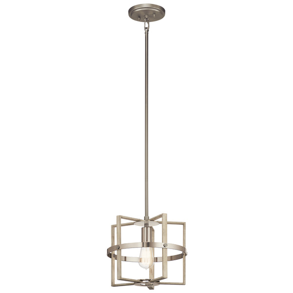 The popular industrial-inspired cage look gets a refreshing update with the Peyton collection 1 light pendant. Squared edges and lines, in a blend of whitewashed wood tones as well as polished and satin nickel metals, create a style thatâ€s soft and modern.
