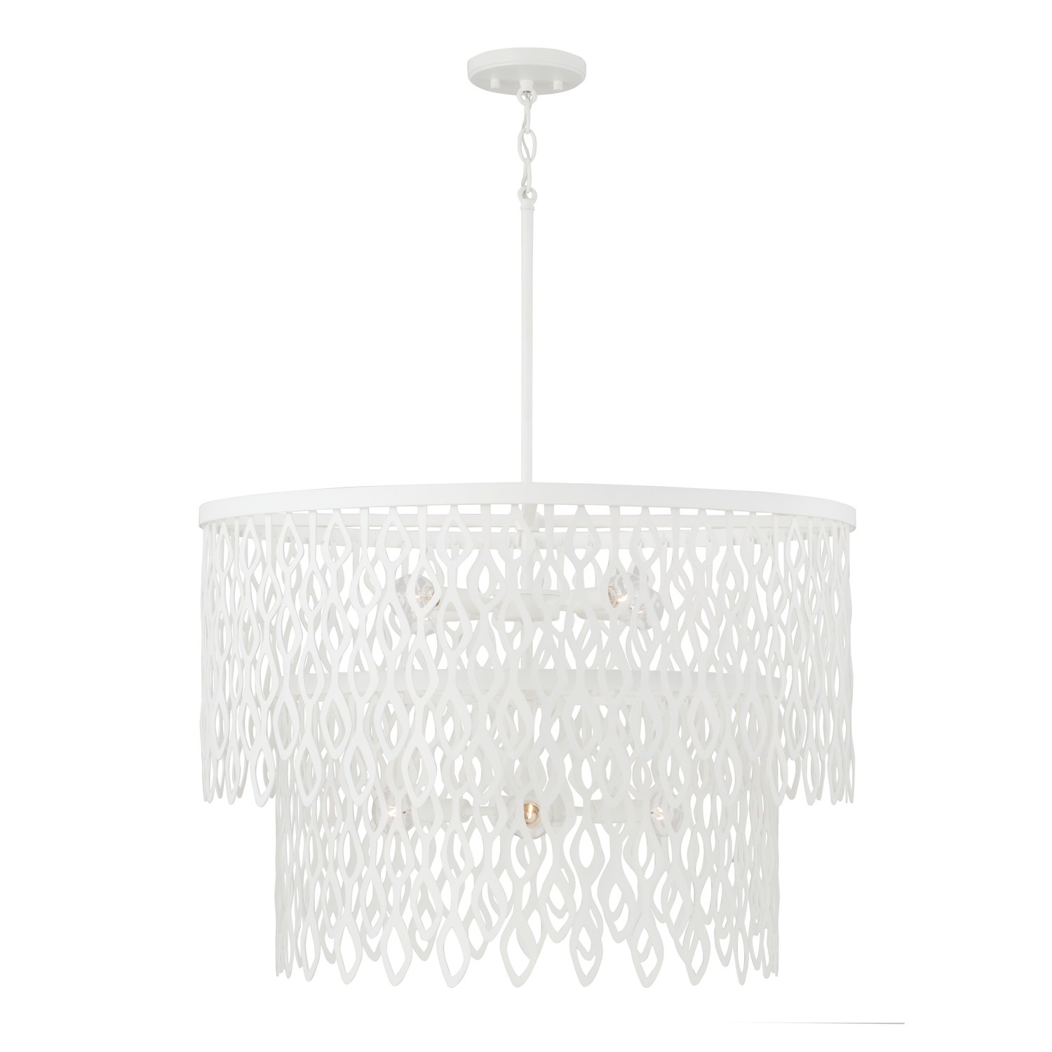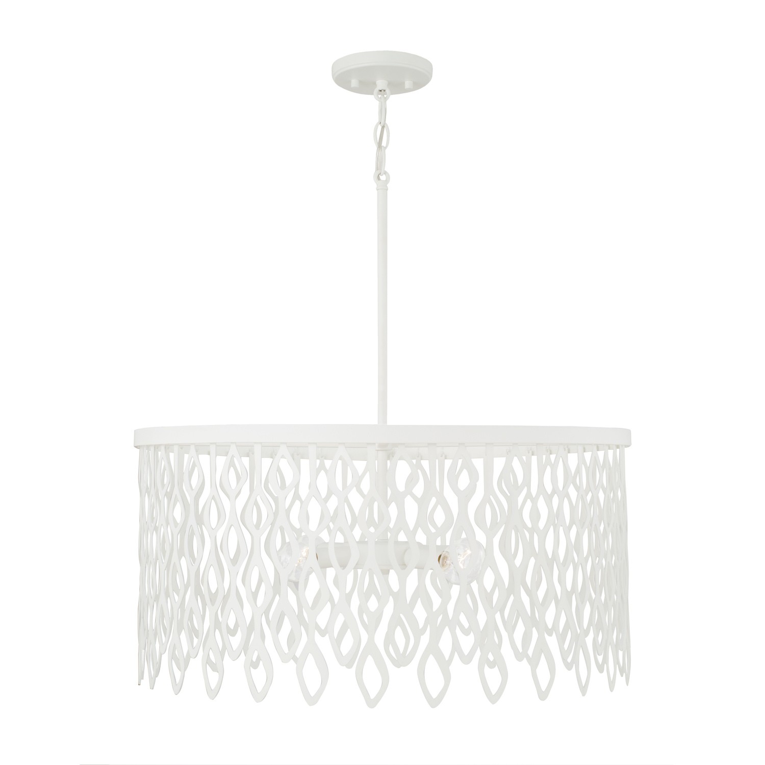Invite modern glamour with the Matte White metal beauty of the Phoebe Pendant. With the cascading laser-cut motif, this luminaire evokes a lace-like effect that lights up from within.