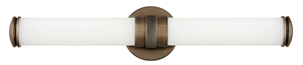 Remi's slim profile and sophisticated details seamlessly merge with LED technology to master both form and function. The etched white glass cylinder is finely detailed with precise, stepped end caps, and the cast knurled bracelet in luxe finish options is artfully crafted with vintage appeal. This chic, transitional design ensures Remi's ability to complement a wide variety of bath or interior spaces.
