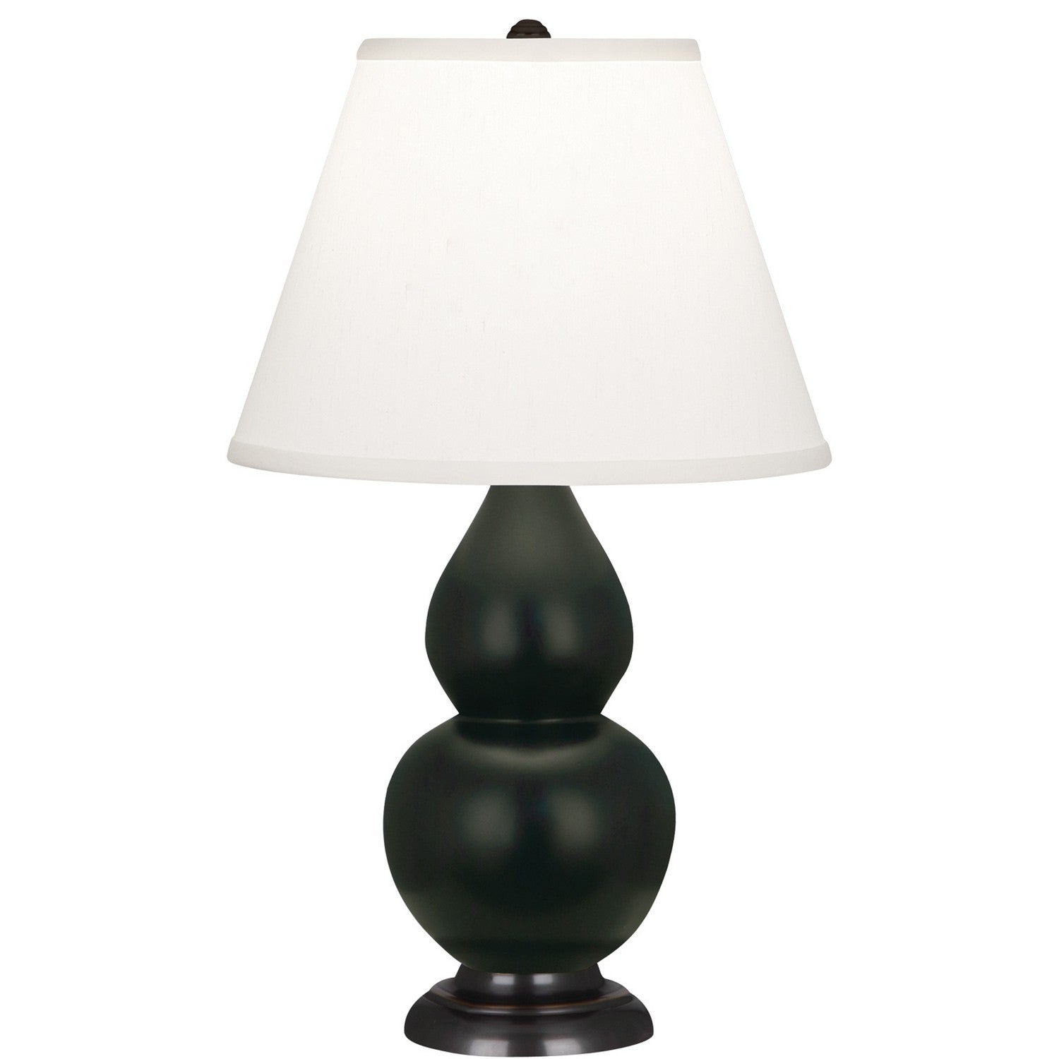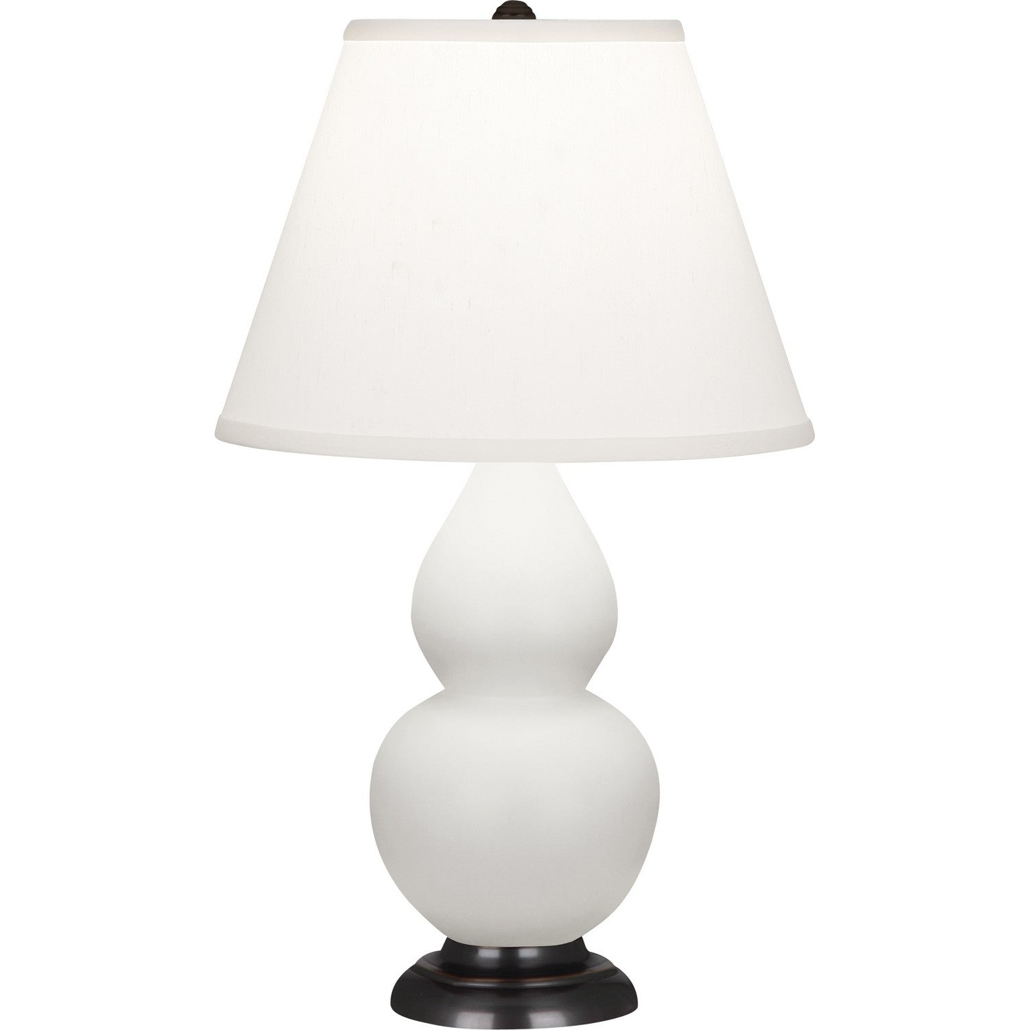 Lily Glazed Ceramic With Deep Patina Bronze Finished Accents Small Double Gourd Accent Lamp With Pearl Dupioni Fabric Shade - Our Double Gourd collection features a simple but gracefully curving silhouette. Available in a wide array of vibrant colors and several different base finishes.
