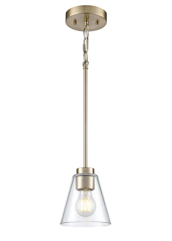 Perfectly flared crystal-clear glass shades framed against streamlined fixtures set a unique design tone for the Strayhan Family of interior lighting. Perfect for illuminating any location from the entryway on throughout the entire home, these fixtures are available as a 1-light sconce, 1-light pendant, 2-light flushmount, 1, 2, 3 and 4-light vanity, and 3, 5, and 9-light chandelier. Finished in matte black, brushed nickel, or modern gold, these understated fixtures infuse a cosmopolitan design sense into any interior space.