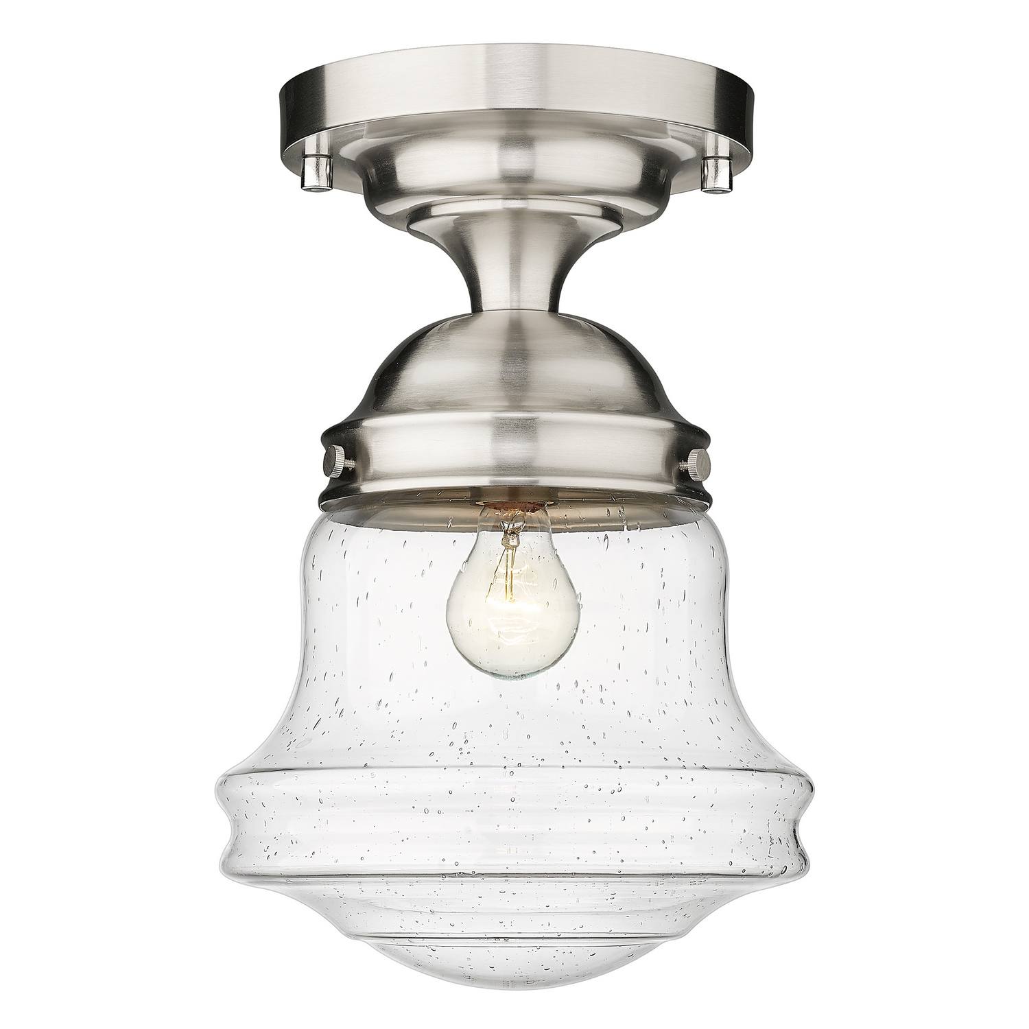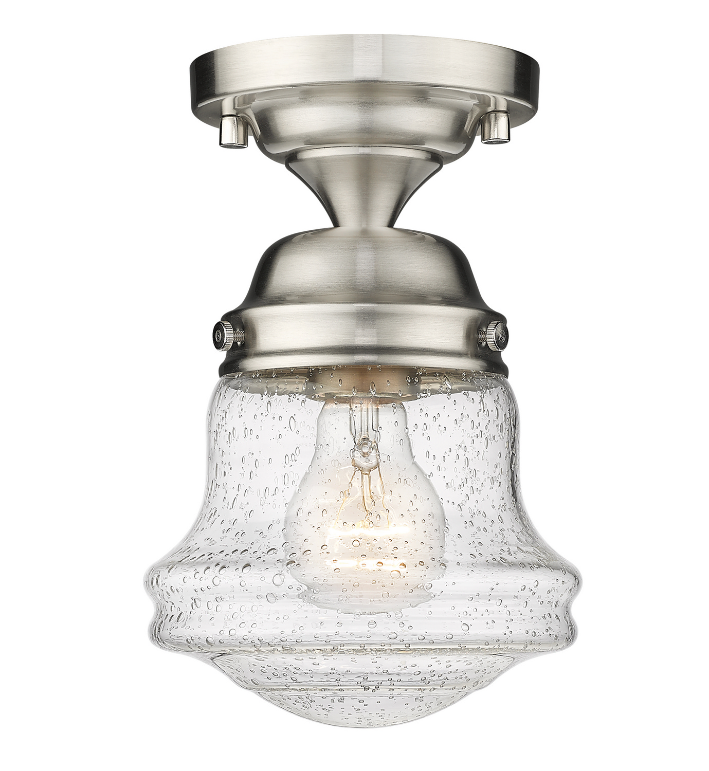 • Brushed Nickel with Clear Seedy Glass and Clear Seedy Shade